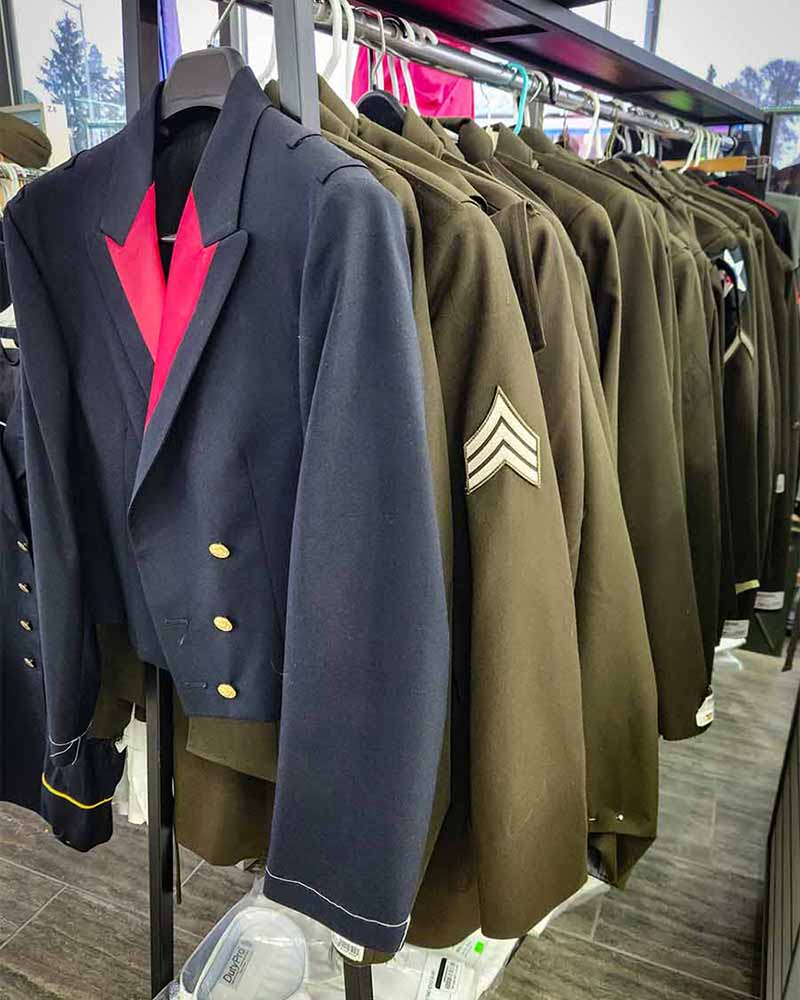Visit us for expert military sewing, ensuring uniform integrity, precise award display, and meticulous flag maintenance with badges, patches, repairs, and quotes available.